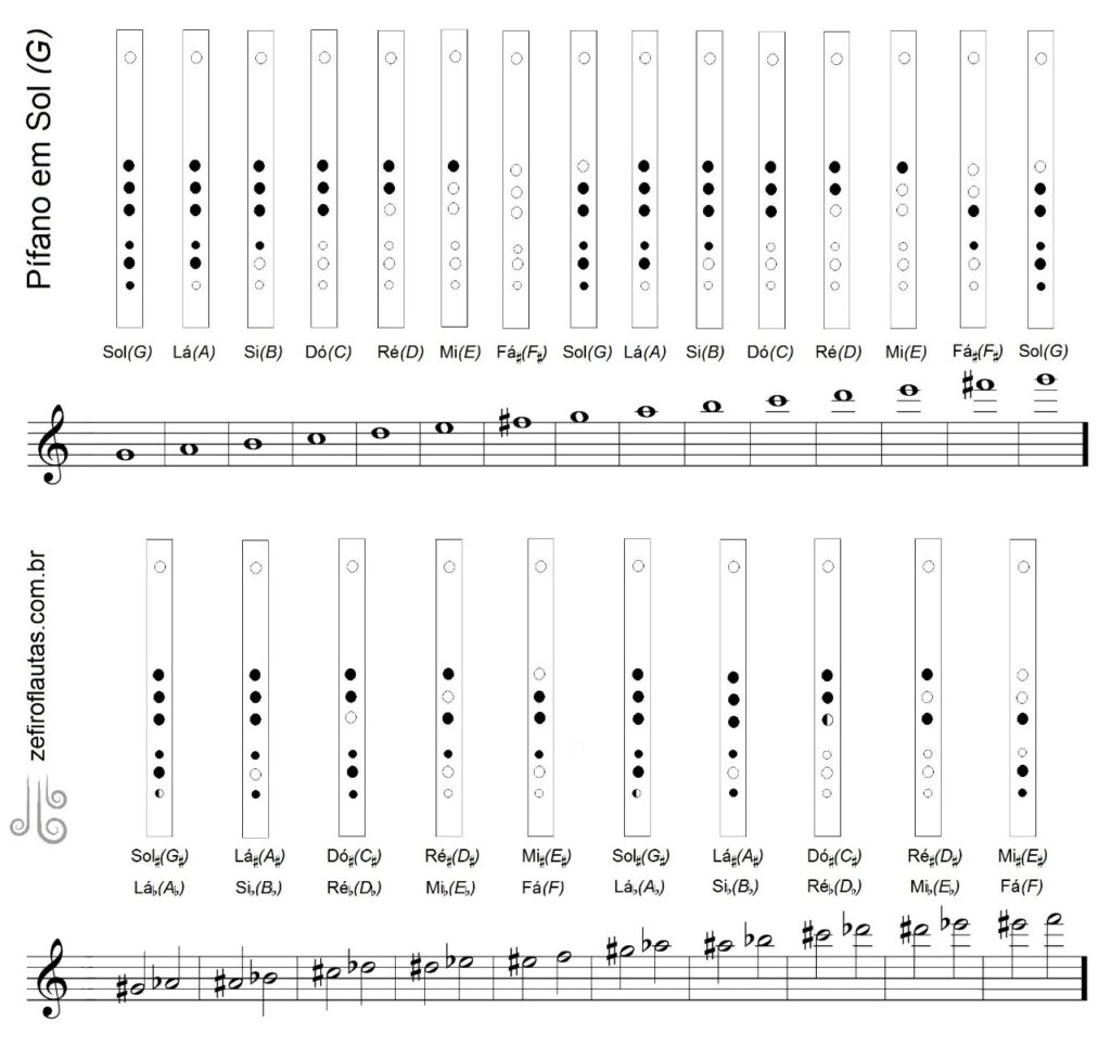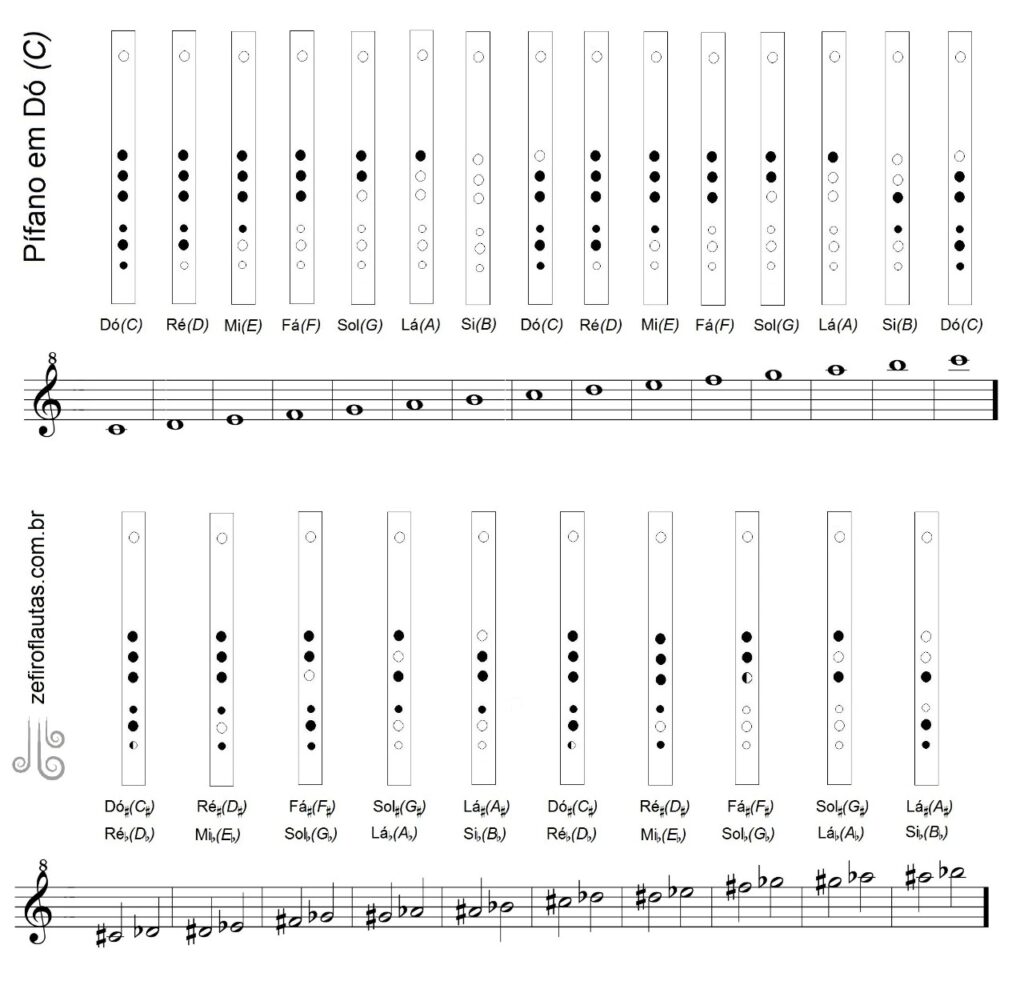 Fazemos Pífanos em alumínio afinados em Sol (G) e em Dó (C).